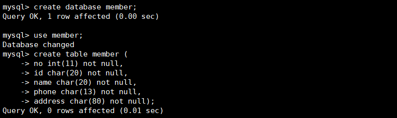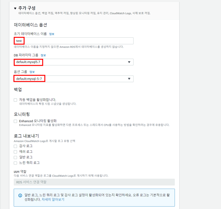 - 실습 시 보유하고 있는 php 파일의 데이터베이스 이름이 test이기 때문에 초기 데이터베이스 이름을 test로 설정