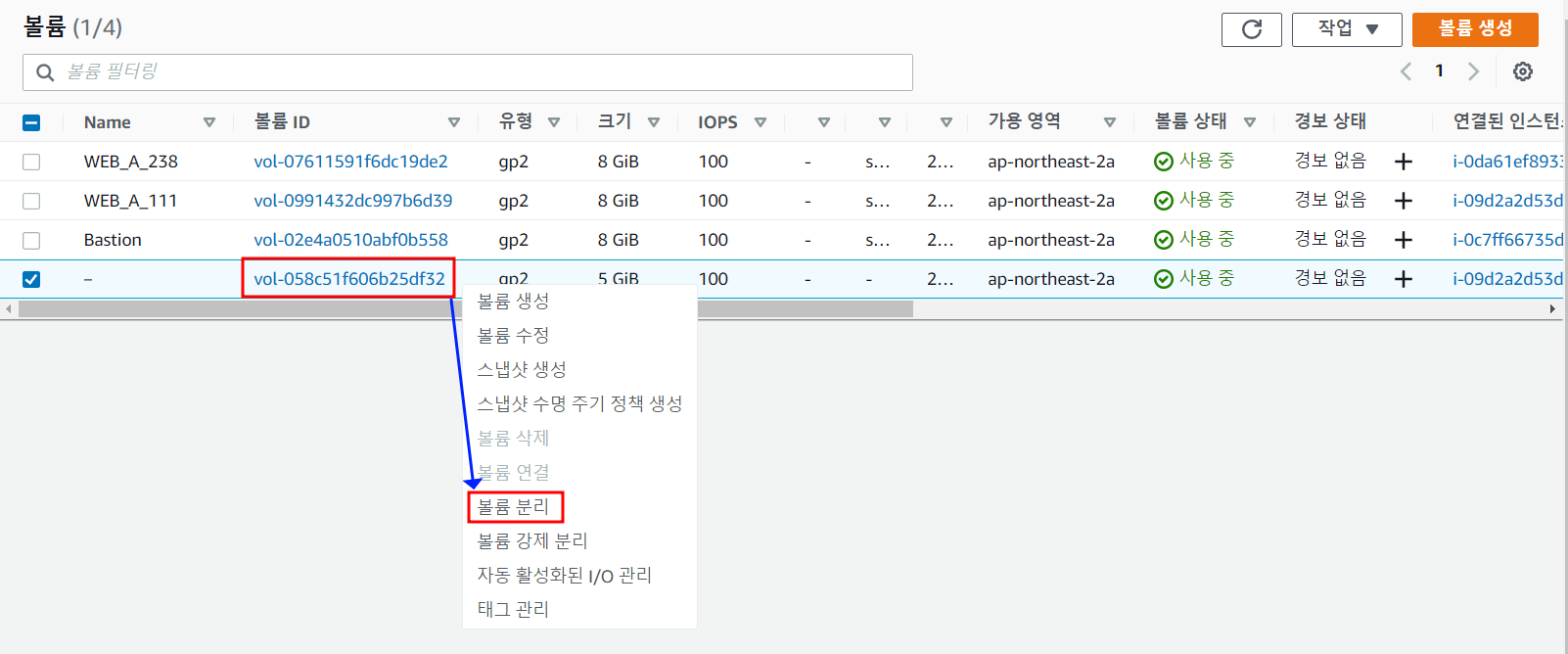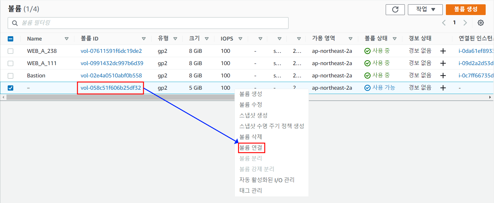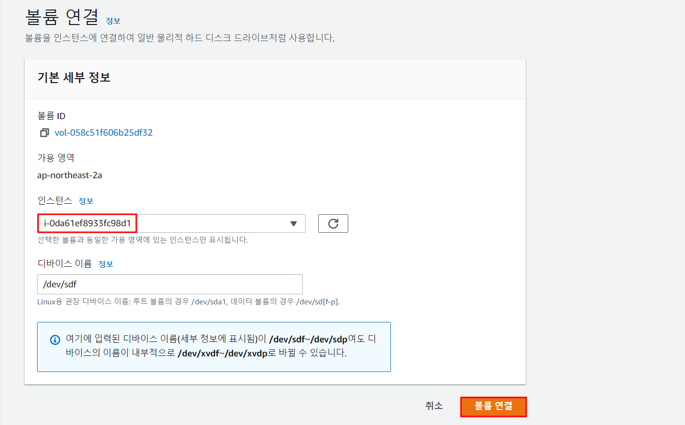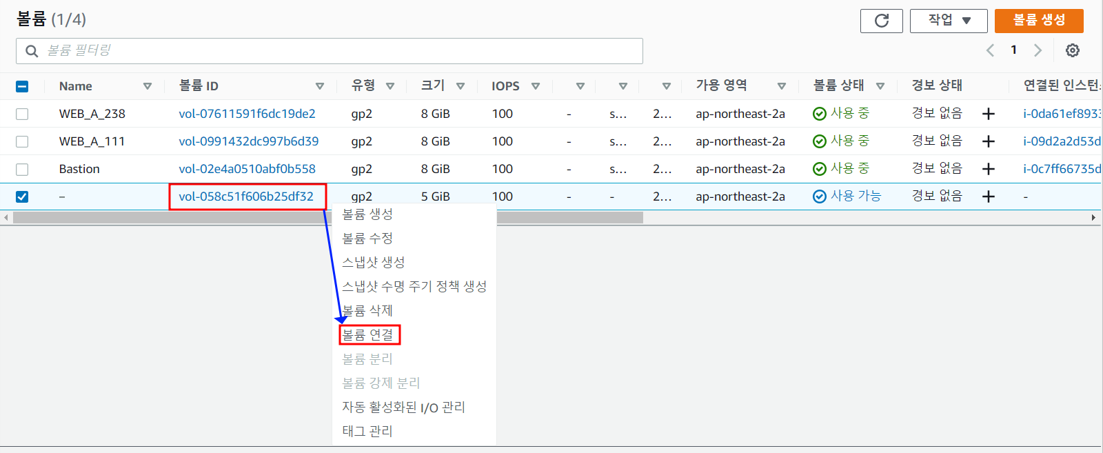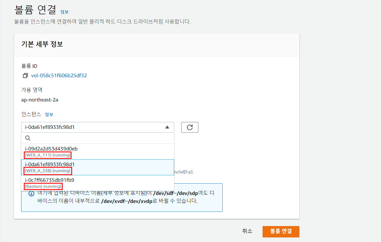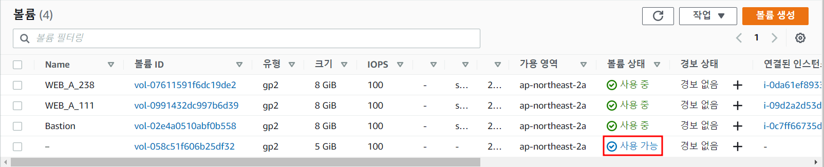 - 볼륨이 어떤 인스턴스와 연결되어있는지 구분하기 어렵기 때문에 이름을 설정해주면 편리함
