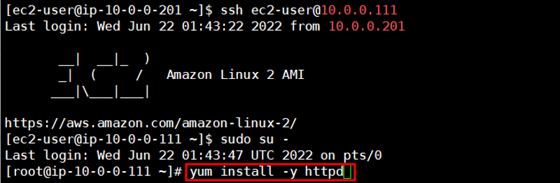 - Bastion을 통해 WEB_A_111 인스턴스에 SSH 접속 후 확인
