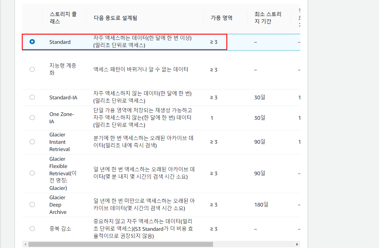 - 스토리지 클래스 : 클래스별로 요금이 다름