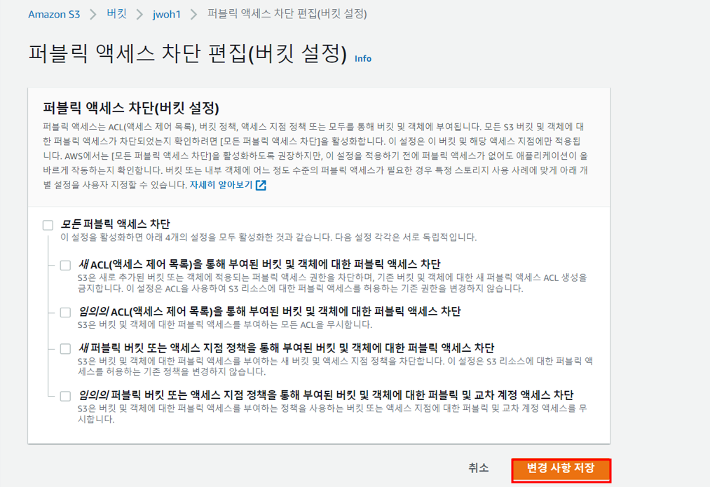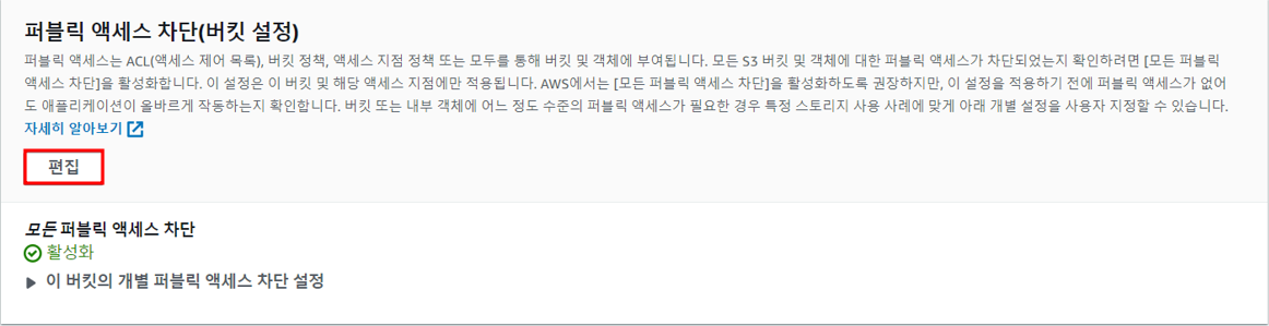 - ACL을 활성화 시켜야 버킷에 대한 권한 편집이 가능
