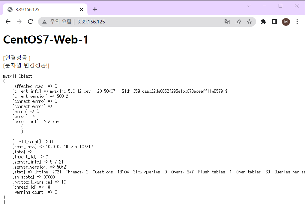 - 첫번째 인스턴스에서 index.php 파일 연결 후 확인