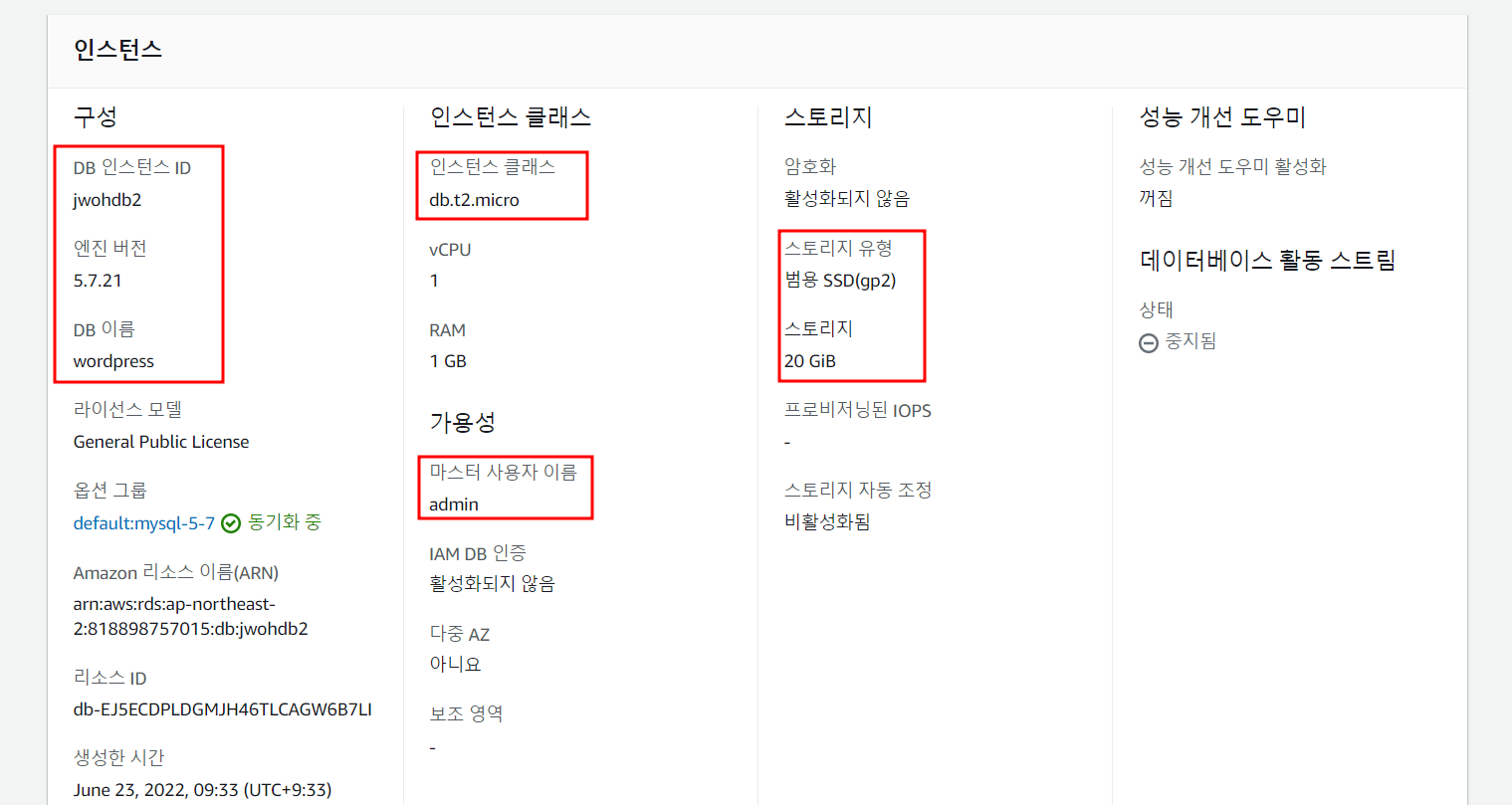 - DB 호스트 : RDS가 돌아가고 있는 서버의 IP 주소 입력