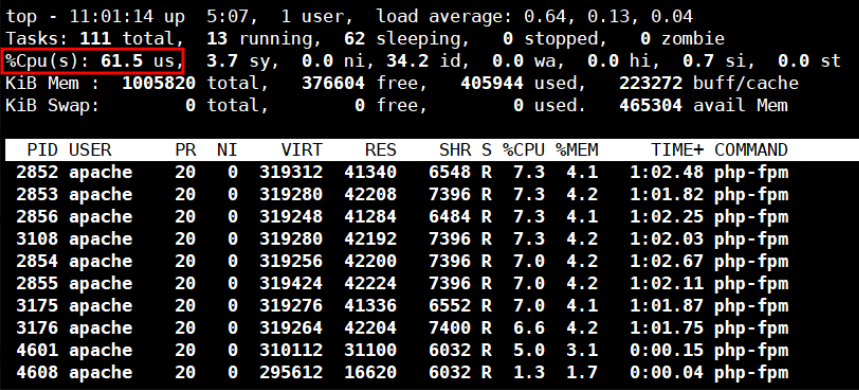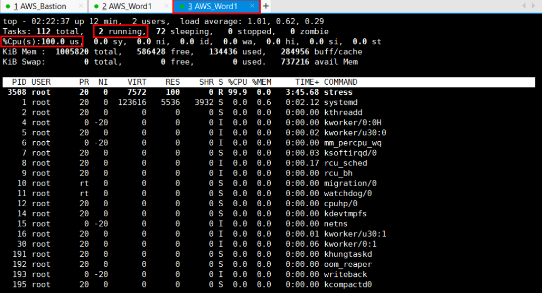 - xShell을 세션 복제 하여 [top] 명령어로 cpu 사용량 확인