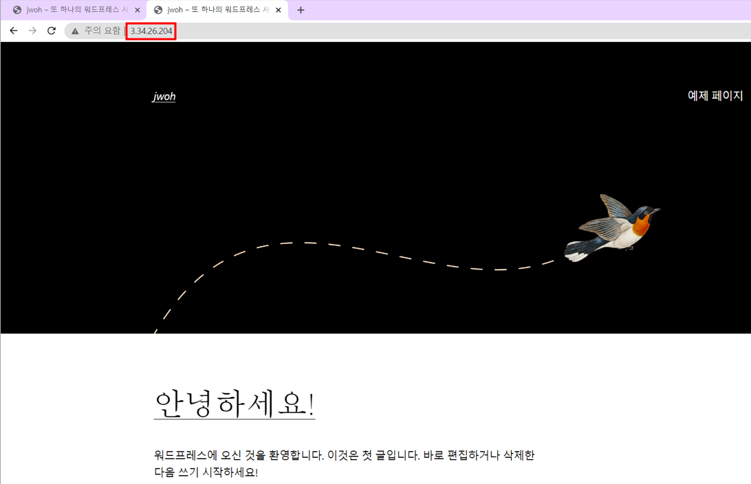 인스턴스는 자동으로 Wordpress 연동 설정이 다 되어있는 상태