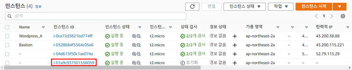 - Auto Scaling 그룹을 생성했기 때문에 인스턴스가 새로 생성됨