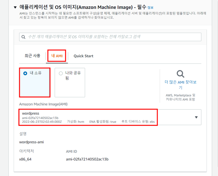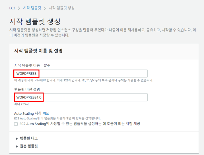 - 템플릿을 생성할 때 쓸 이미지는 위에서 생성한 내 AMI 사용