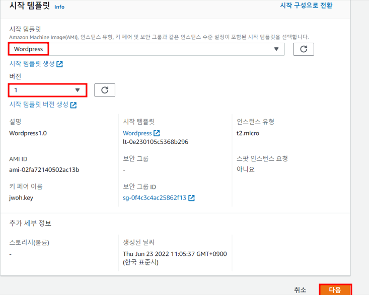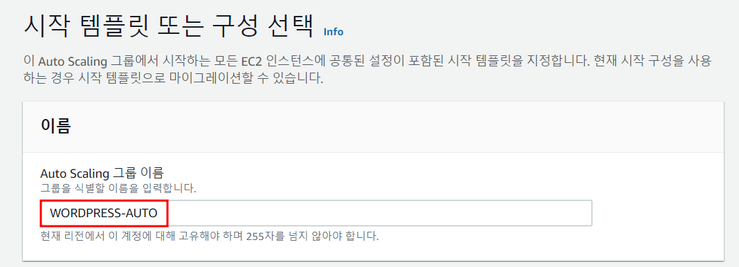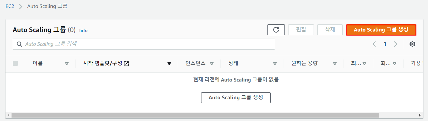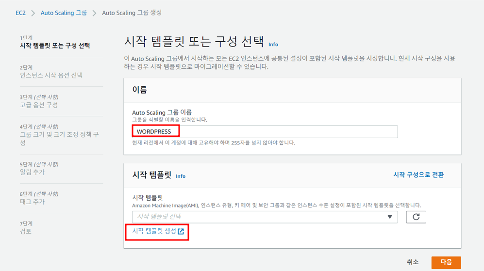 - 시작 템플릿 창을 끄고 다시 Auto Scaling 생성 창으로 이동
