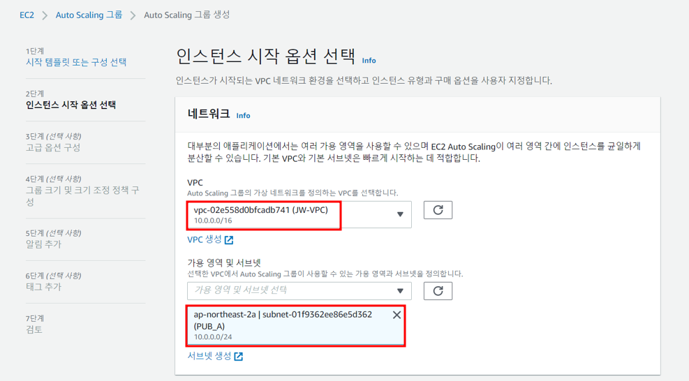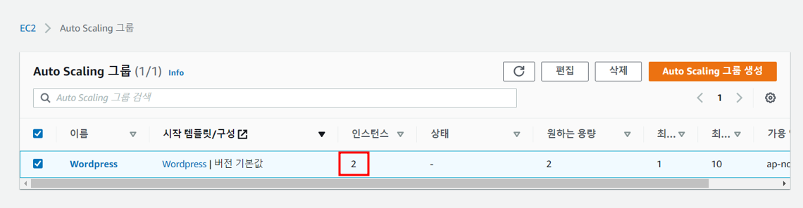 - 원하는 용량 : 1 (2로 설정하면 처음부터 2개의 인스턴스 생성)