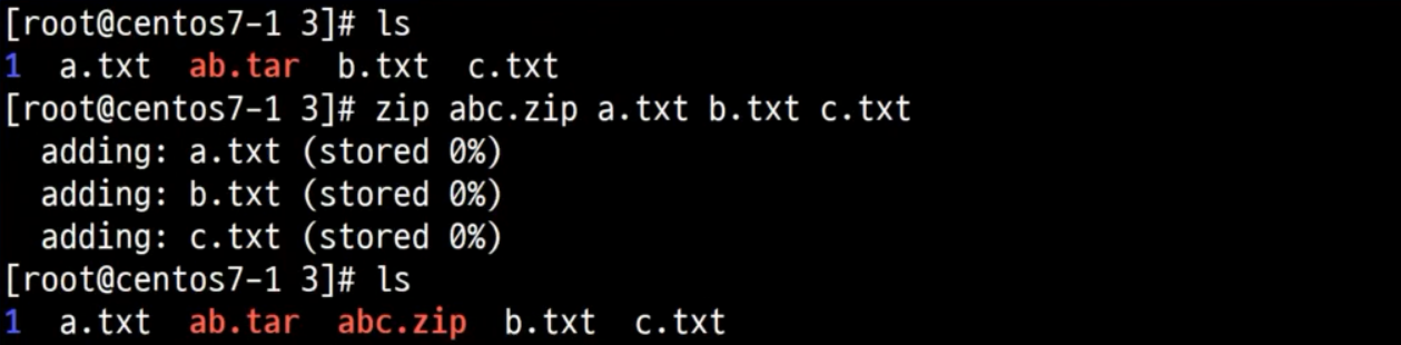 # zip 파일명.zip 파일명1 파일명2 파일명3 ...