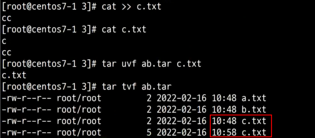 -u : 기존 아카이브 파일에 업그레이드 된 파일 추가