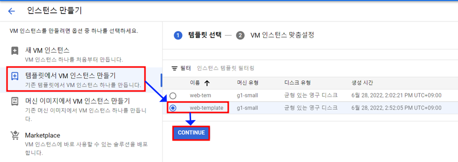 - 생성한 이미지를 사용해 인스턴스 템플릿 생성