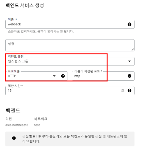 - 백엔드 인스턴스 유형, HTTP 프로토콜 사용