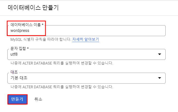 - DB 패스워드 : Cloud SQL 인스턴스 생성 시 설정한 패스워드