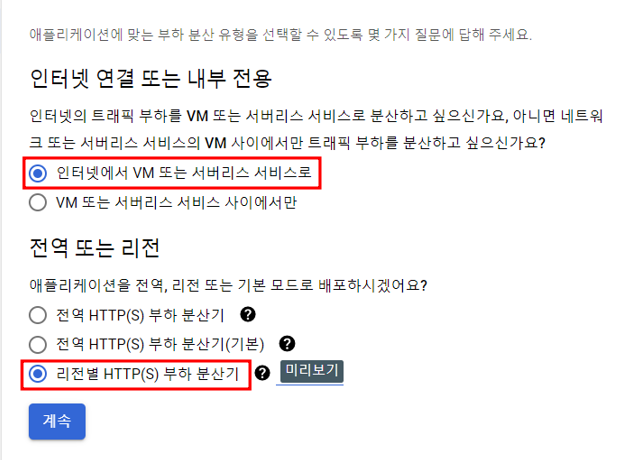 - 로드밸런서를 외부에 노출시키기 위해 인터넷에서 VM 또는 서버리스 서비스로 설정