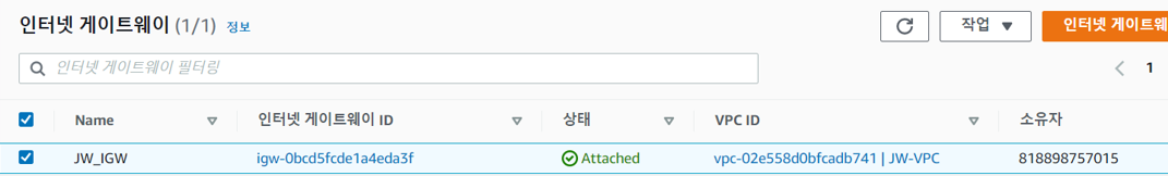 3. 인터넷 게이트웨이 생성