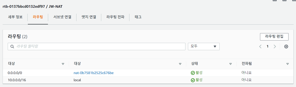 - 라우팅 테이블 설정