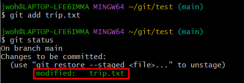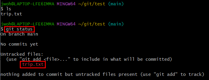 → 해당 파일이 이전에 한번은 반드시 commit이 되었어야함
