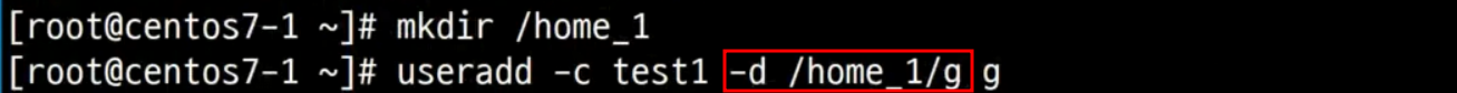 -g : gid 설정. 기본적으로 uid와 동일한 gid 자동 생성. 단 -g 옵션은 해당 그룹이 존재해야함