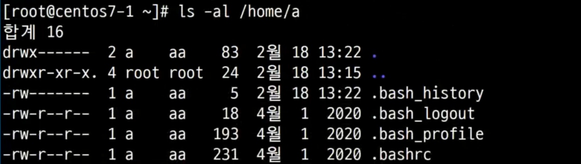 *사용자 계정 삭제 시 -r 옵션을 사용하지 않으면 위의 두 파일과 디렉토리가 그대로 남아있게 됨