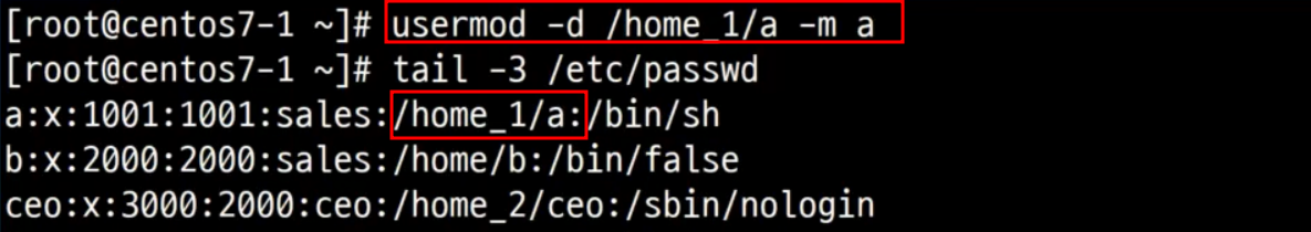 * 단 홈디렉토리 변경 시 내부 컨텐츠까지 이동을 위해서는 -m 옵션 추가