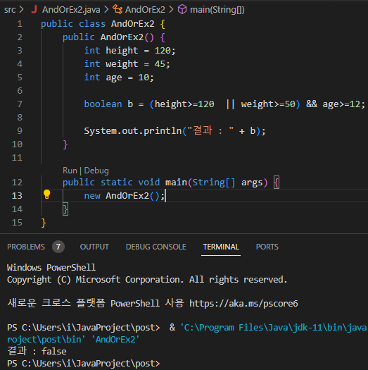 1. 논리합 연산자 실습