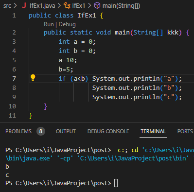 System.out.println("b")