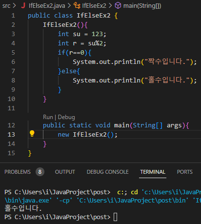 2) 짝수 홀수를 구분하는 코드