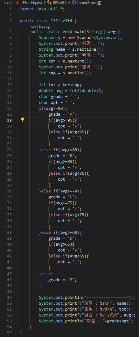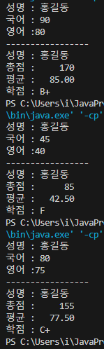 2) 평균 점수에 따라 등급을 나누는 프로그램