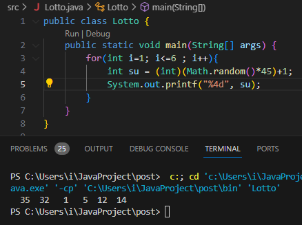 * 1~45까지 숫자 중 난수가 발생하는 공식
