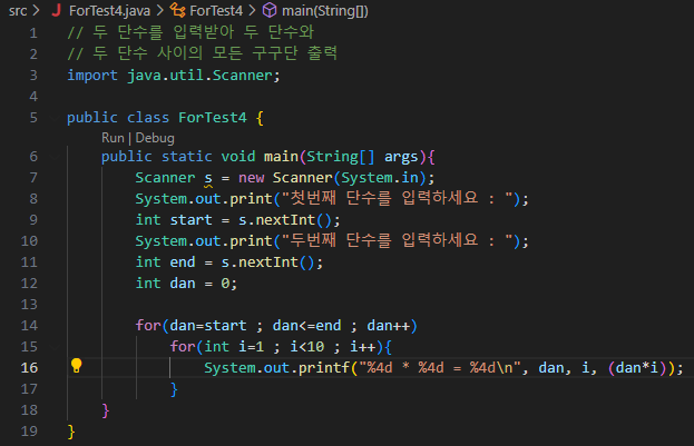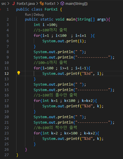 * i가 90 미만일때까지는 위의 for문을 반복하다가 90부터는 아래의 출력문을 출력