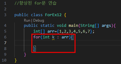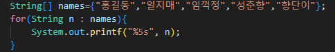 for(타입 변수명 : 배열 or 컬렉션) { ... }
