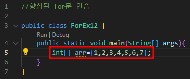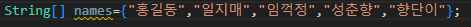 int [] arr = {1,2,3,4,5,6,7}; >> , 로 나눈 두개 이상의 정보들을 arr이라는 배열에 넣어서 다님