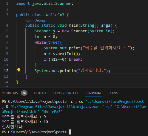 1) 기본 골격 짜기 : while이 true이면 A를 반복 출력 / while이 false가 나온다면 B출력 후 종료