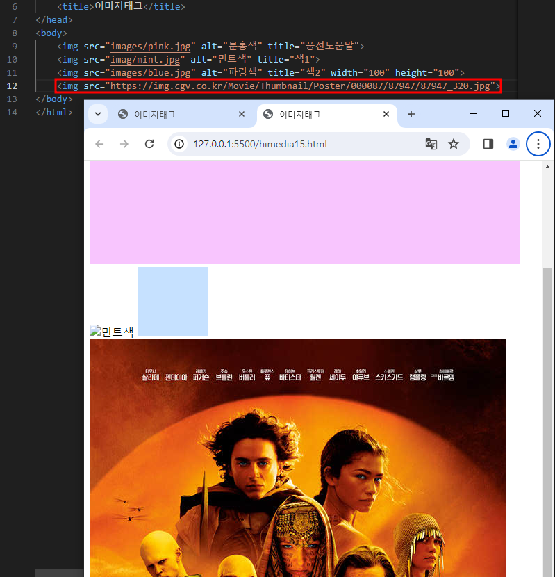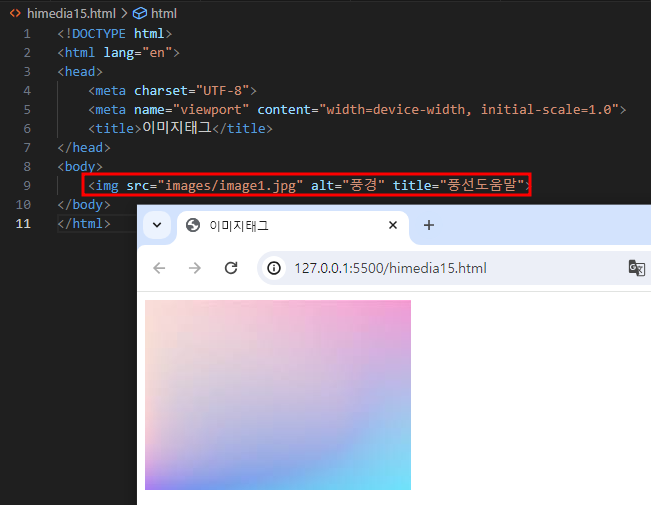 src="폴더명/파일명" > 사진이 있는 실제 경로 (소스)