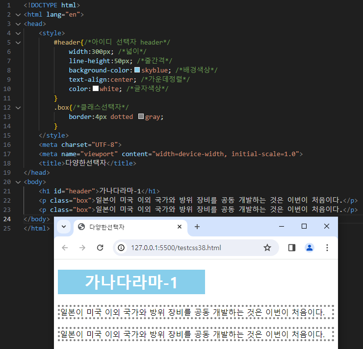 | [CSS] inline style sheet | Class | ID | div | span (0) | 2024.03.05 |