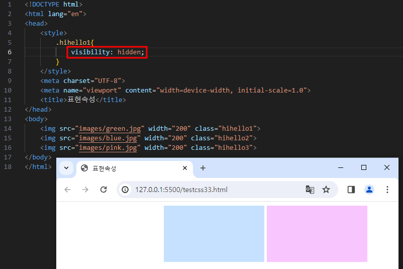 2. visibility: hidden; >> 보이지는 않지만 자리 유지