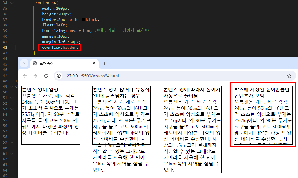 * 콘텐츠의 양이 많아서 박스에 흘러넘침