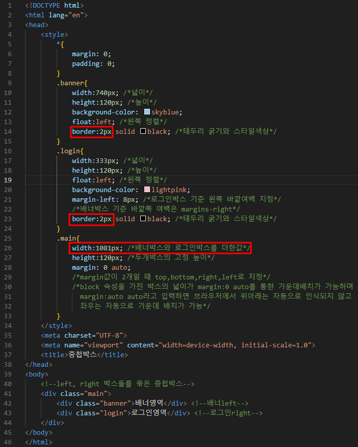 로그인박스 넓이 : 333+8(여백)+2(테두리)+2(테두리)=345