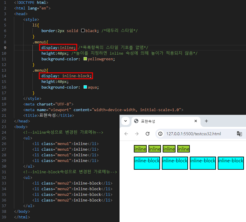 1. display : 요소의 성격을 바꿔주는 속성 (block 태그를 inline으로, inline 태그를 block으로 바꿀 수 있음)