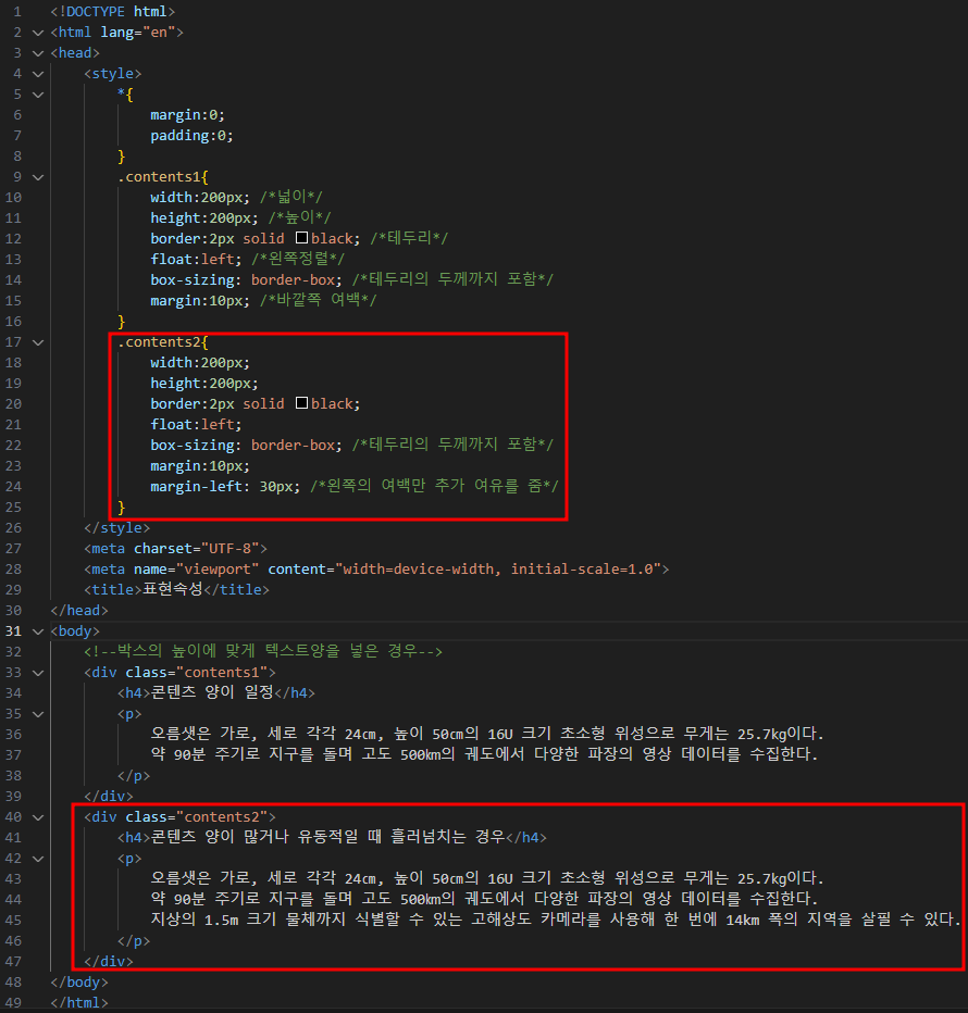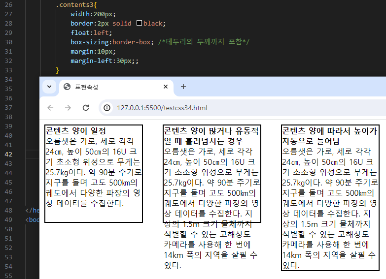 * 박스의 높이를 지정하지 않으면 콘텐츠 양에 따라 높이가 자동으로 늘어남