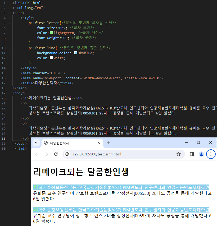 :: >> 이중문자선택자(첫번째 글자만 선택)