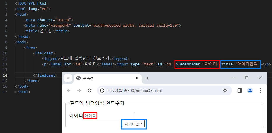 placeholder : 박스 안에서 미리 입력해야하는 것을 알려주는 기능