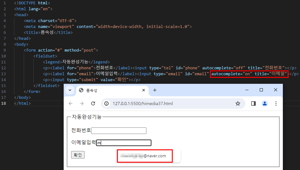 autocomplete="on" : 이전에 입력했던 정보를 자동으로 입력