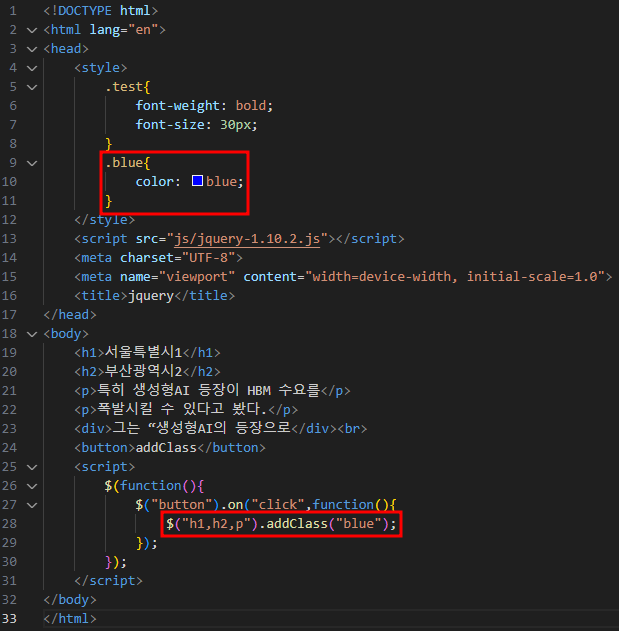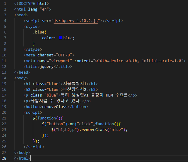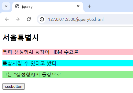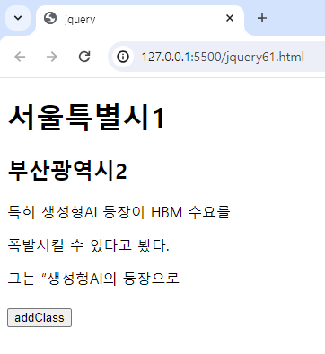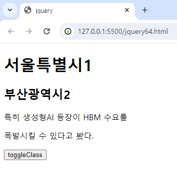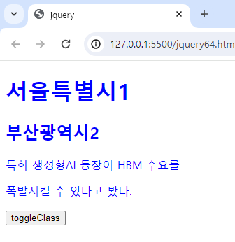 3. toggleClass : 선택한 요소의 클래스 값 추가 제거를 반복하는 것