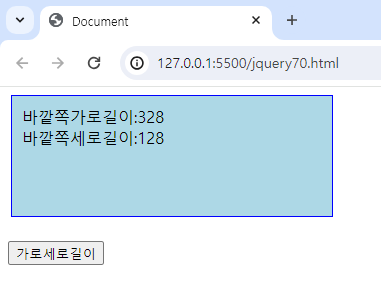 .outerWidth() : 요소의 width 값 + padding 값 + border 값
