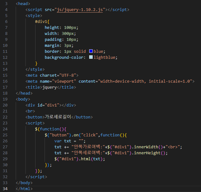 4. outerWidth(true) & outerHeigh(true) : 가로세로 안쪽 여백과 테두리, 바깥쪽여백의 두께까지 포함된 값