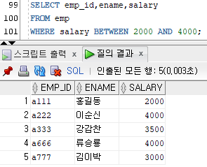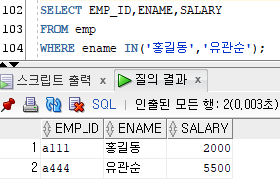 7. IN : 같다(=). 여러개를 비교할 수 있음