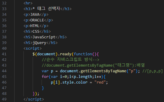 | document.getElementsByTagName("태그명") | $("태그명") | |