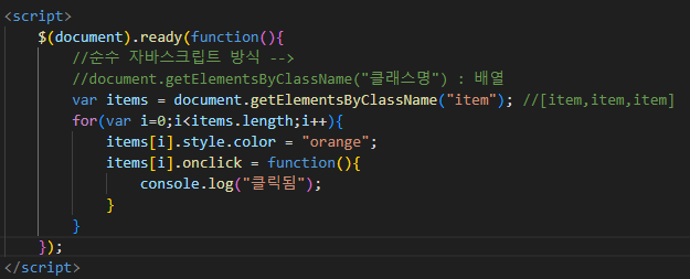 | document.getElementsByClassName("클래스명") | $(".클래스명") | |